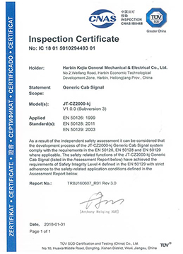 JT-CZ2000-kj型機(jī)車信號車載系統(tǒng)通過中鐵檢驗(yàn)認(rèn)證中心的SIL4認(rèn)證