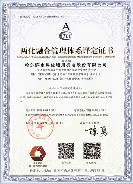 兩化融合管理體系評定證書
